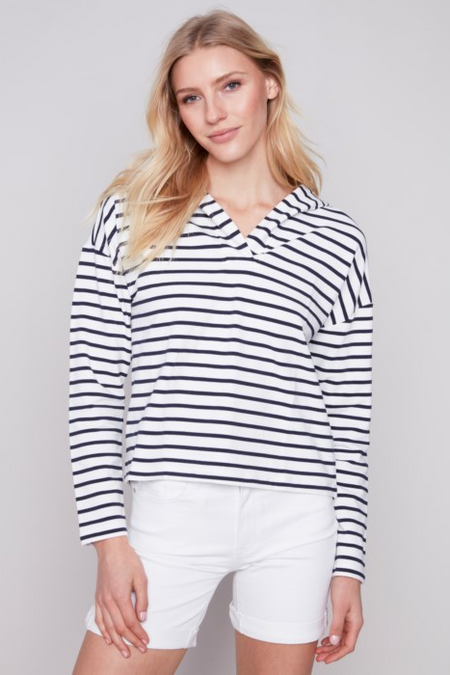 V Neck Striped Hoodie