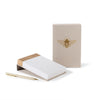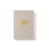 Stay organized with our BEE BOOKCLOTH MEMO NOTEBOOK. This desktop notepad features a flexible hardcover wrapped in book cloth, providing durability and style. With Fringe original artwork and a metallic gold foil design, it's a functional and aesthetic addition to your work space. The easel flip cover makes note-taking easy and efficient.