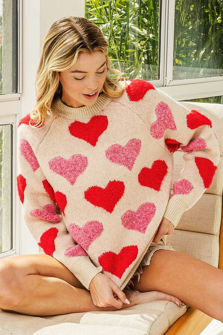Puff Sleeve Heart Pattern Sweater