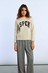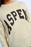A chic winter statement piece with a cozy, lived-in feel. This soft cream knit features bold collegiate-style “ASPEN” lettering across the front, perfect for ski-inspired styling or après-winter vibes. The relaxed silhouette, ribbed trim, and plush texture make it an easy throw-on with denim or tailored trousers for that effortlessly cool, mountain-town look.
