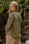 The perfect blend of rugged and refined, this olive shacket is made for fall layering. Featuring a soft corduroy collar, relaxed fit, and worn-in texture, it’s the easy piece you’ll throw on again and again for an effortless, cozy look.