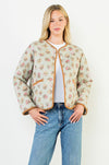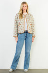 This floral jacket features soft quilting, warm neutral trimming, and a relaxed open-front silhouette that pairs easily with denim, dresses, and basics. Lightweight yet cozy, it adds a touch of feminine texture to your wardrobe and transitions beautifully from season to season.