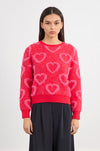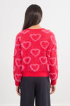 This fuzzy heart sweater brings all the cozy vibes in a bold pop of red with textured pink hearts throughout. The relaxed fit keeps it comfy, while the playful pattern makes it the perfect pick for holiday parties, winter errands, or a cute Valentine's-prep moment. Pair it with denim, a mini skirt, or your favorite lounge bottoms.