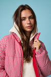 Add a pop of fun to your cold-weather line-up with this adorable gingham puffer. The bold red-and-white check gives it that playful, retro feel, while the cozy quilted padding keeps things warm and practical. Finished with a full zip front and relaxed fit, it’s the perfect throw-on layer for errands, après-ski, or just making winter a little brighter.