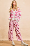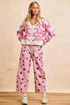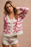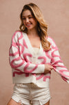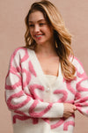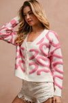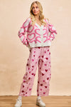This cozy cardigan features textured pink heart-loop detailing throughout for the cutest pop of color. Finished with luxe pearl-style heart buttons and a relaxed fit, it’s the perfect statement knit for dressing up denim, layering over basics, or adding a touch of charm to your winter wardrobe.