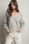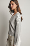 V-Neck Flower Detail Sweater