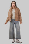 This quilted jacket features unique knotted flower detailing throughout, giving a fresh, elevated twist to a cozy winter staple. With an oversized fit, high neck, and zipper closure, it’s warm, modern, and effortlessly cool. Throw it on with denim or leggings for a standout cold-weather look.