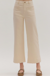 Sweet meets sophisticated in these cream wide-leg pants featuring delicate scalloped edging along the pockets and hem. Designed with a flattering high-rise fit, they add a playful yet polished touch to your everyday look.