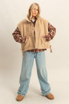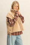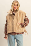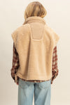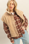 Layer up in warmth and texture with this ultra-soft sherpa puffer vest. Designed in a neutral tan tone, it features a snap-button front, high collar, and side ties for the perfect relaxed-yet-structured look. The ultimate fall layering piece to throw over flannels, knits, or tees.`