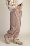 Meet your new favorite statement pant. These relaxed, billowy trousers feature soft pleating, a comfortable elastic waistband, and a drapey wide-leg silhouette that moves beautifully. Easy to dress up or down, they pair perfectly with sweaters, tees, and boots for an effortless but elevated look.